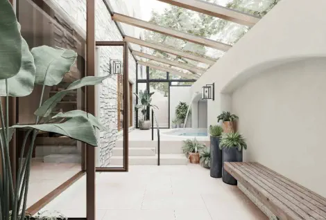 In a Wabi-Sabi-inspired space, every detail whispers calm. Think weathered wood, linen fabrics, asymmetrical ceramics, and soft lighting —